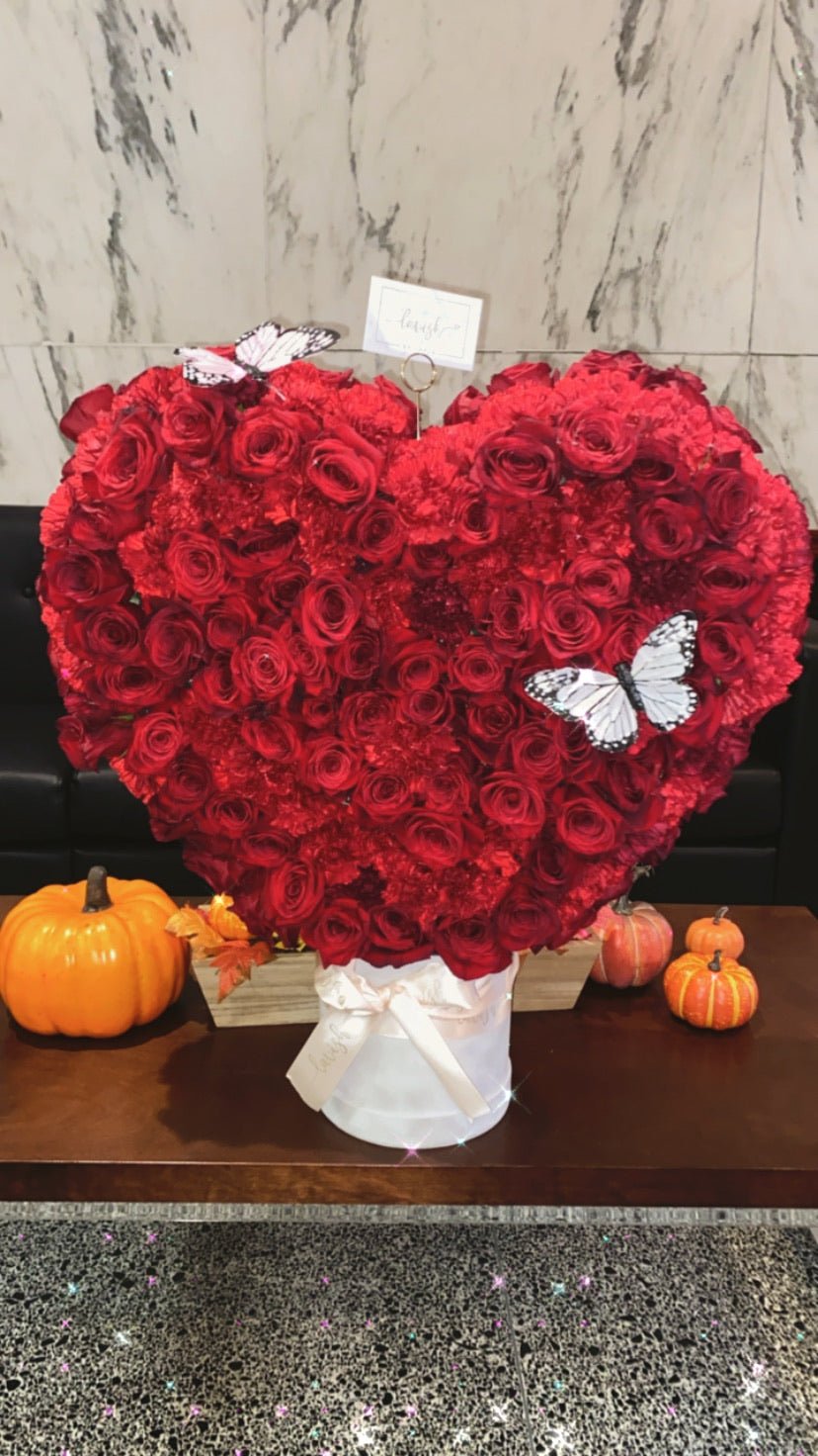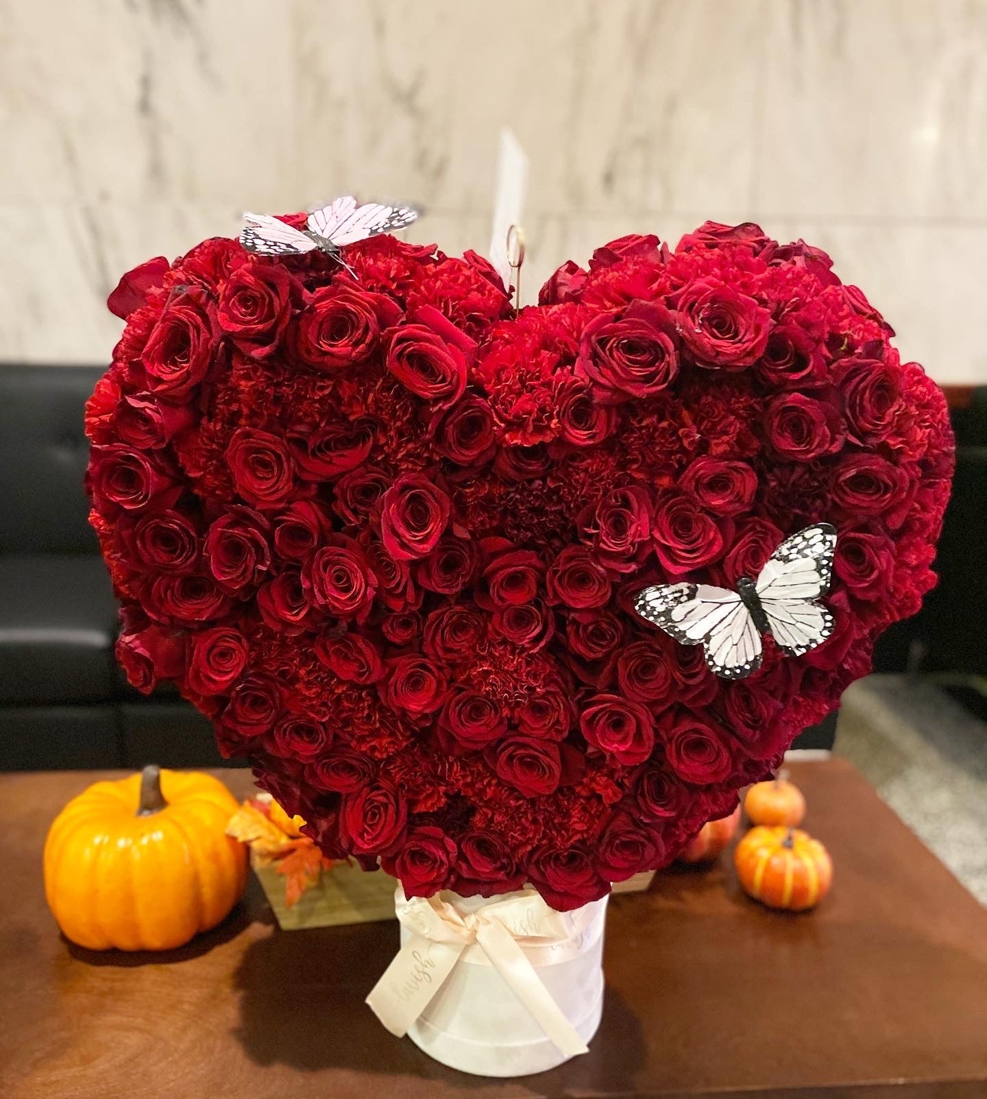 This is our most popular and signature arrangement. It’s composed of 200 roses and 100 carnations.